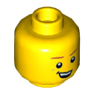 Minifig, Head Dual Sided Dark Orange Eyebrows, Crooked Smile with Teeth / Determined, Closed Mouth Pattern - Stud Recessed