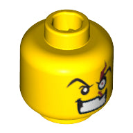 Minifig, Head Male Angry Eyebrows and White Left Eye with Red Scar, Evil Grin with Teeth Pattern - Blocked Open Stud