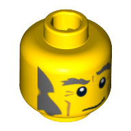 Minifig, Head Male Dark Bluish Gray Eyebrows, Bushy Sideburns and Crooked Smile Pattern - Blocked Open Stud
