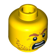 Minifig, Head Beard Stubble, Brown Angry Eyebrows and Open Angry Mouth Pattern - Blocked Open Stud