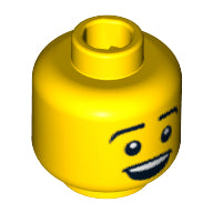 Minifig, Head Male Black Eyebrows, Open Mouth Smile Pattern - Blocked Open Stud