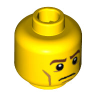 Minifig, Head Brown Eyebrows, White Pupils, Cheek Lines, Frown Pattern - Blocked Open Stud