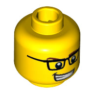 Minifig, Head Glasses Rectangular, Brown Eyebrows, Open Mouth Smile with Teeth, White Pupils Pattern - Stud Recessed