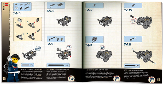 Master Builder Academy was sold in a series of kits which each included a building instruction handbook containing tips on the building techniques featured in the kit, and the bricks needed to build the models within it. A minifigure was included with the first kit of each of the three levels. Each kit included new accessories for the minifigure, based on the theme of the kit.