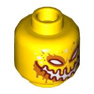 Minifig, Head Alien Red and Orange Eyes, Wide Squiggley Mouth, White and Orange Spots on Front and Back Pattern - Stud Recessed