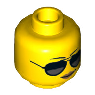 Minifig, Head Female with Black and Silver Sunglasses, Black Eyebrows, Peach Lips Pattern - Stud Recessed